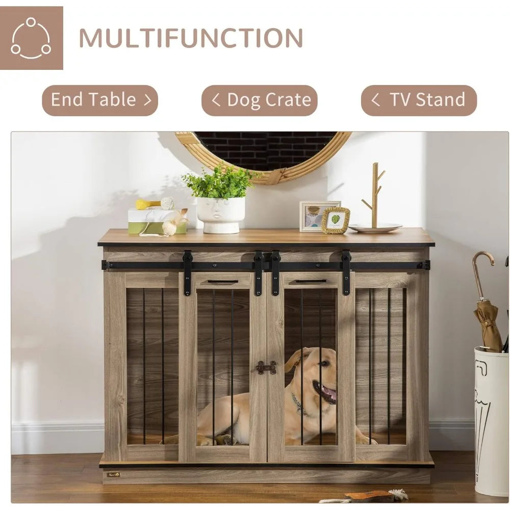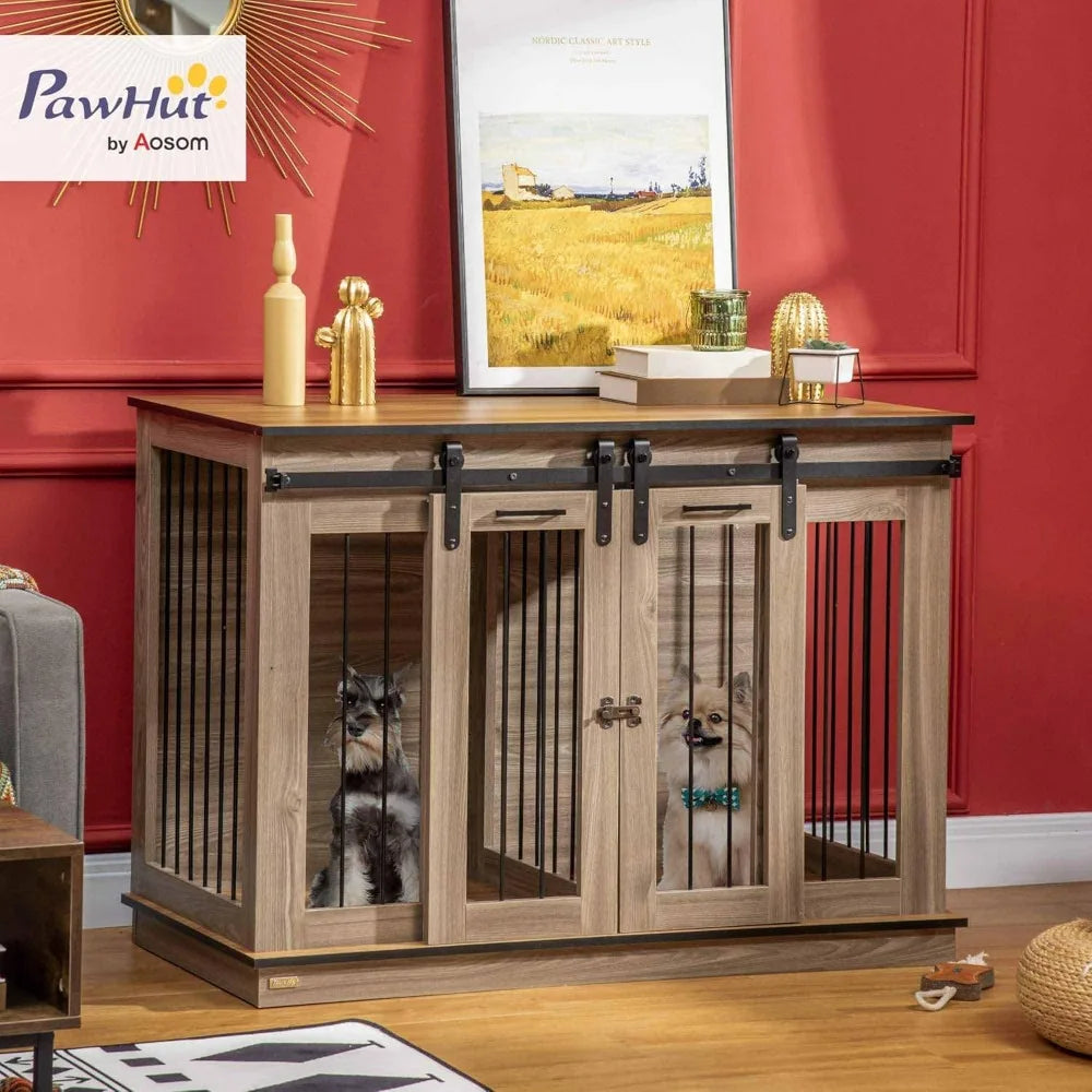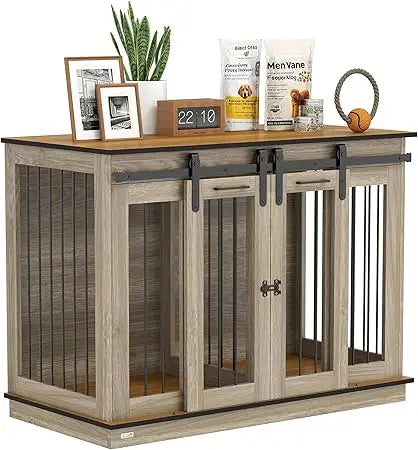 - Sliding Doors: Stylish sliding barn doors make it easy to move your pet in and out, this dog crate furniture helps save space and add rustic charm to your home.