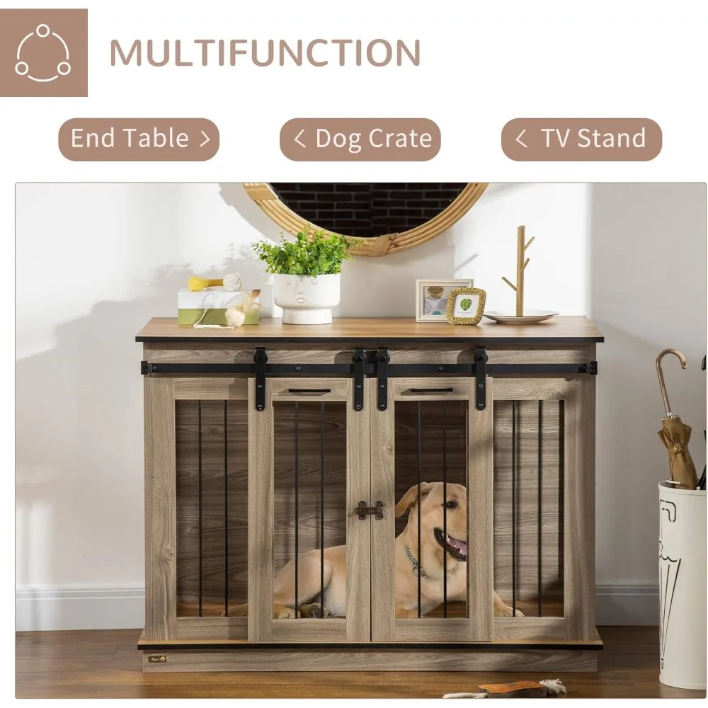 Dog Crate Furniture with Divider, Dog Crate End Table for Small to Large Dogs, Large Indoor Dog Kennel with Double Doors, 47" W