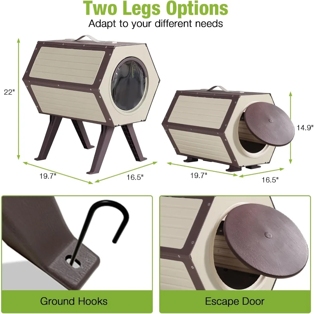 - Flexible Assembly & Safe Escape: Choose between short and long legs for easy assembly. The heated cat house also features a rear escape door, ensuring your cat's safety in case of emergency