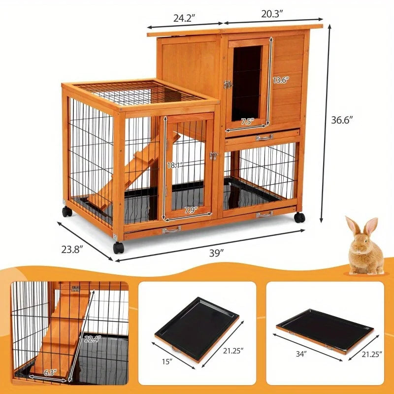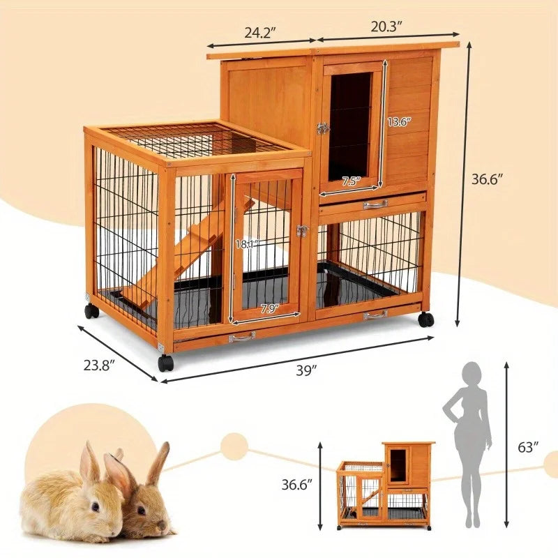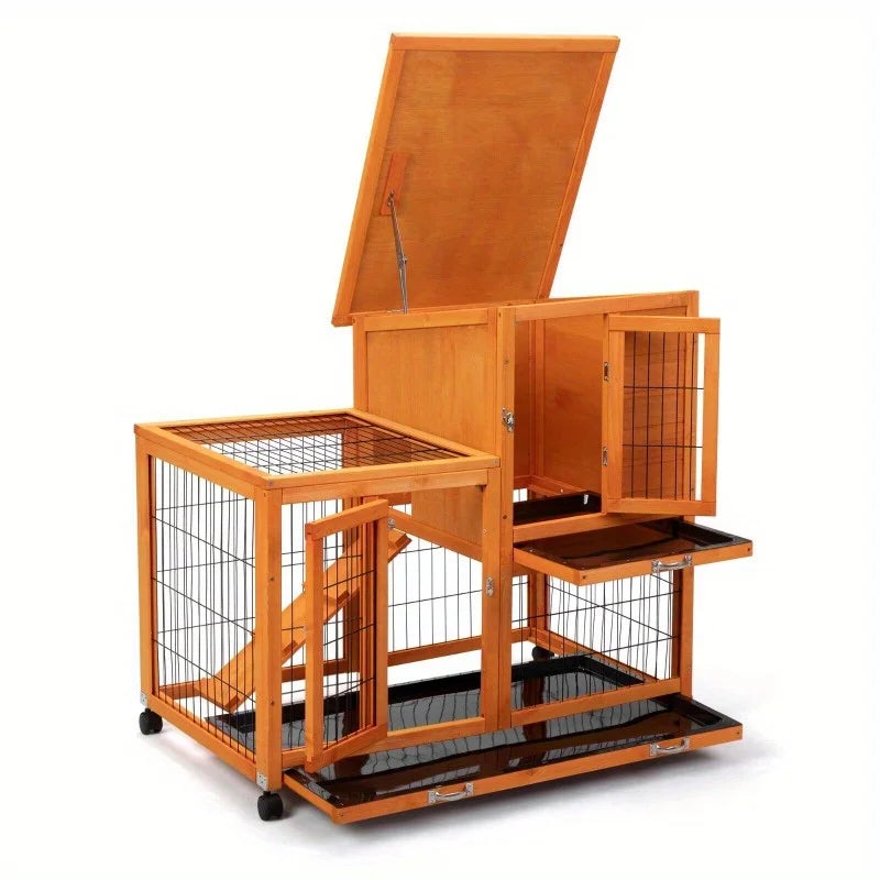 2-story rabbit hutch for small animals to sleep, rest, and play